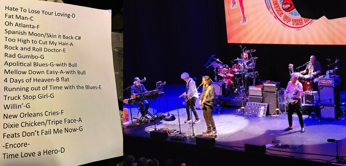 | Setlist: Hate To Lose Your Lovin, Fat Man In The Bathtub, Oh Atlanta, Spanish Moon > Skin It Back, Too High To Cut My Hair,Rock And Roll Doctor, Rad Gumbo, Apolitical Blues*, Mellow Down Easy*, 4 Days Of Heaven, Running Out Of Time With The Blues, Truck Stop Girl, Willin`, New Orleans Cries, Dixie Chicken > Tripe Face Boogie, Feats Don`t Fail Me Now, E: Time Loves A Hero | |