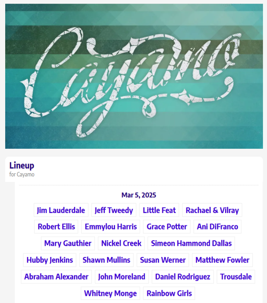 | Setlist provided by Featbase.net © 2026 | |