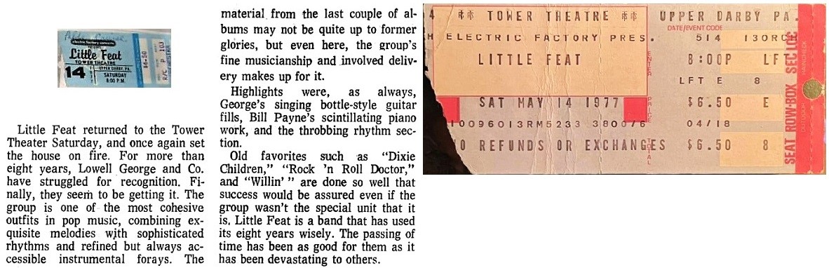 | Date: 05/14/1977 (May 14, 1977) | Location: Tower Theatre - Upper Darby,PA |