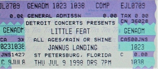 | Setlist: Set 1: Skin It Back, Changin' Luck, Hate To Lose Your Lovin', Rock and Roll Everynight, Hoy Hoy, Ferocious Morning, Dixie Chicken, Loco Motives, A Distant Thunder, Under the Radar, Homeground, Calling The Children Home, The Blues Don't Tell It All, Let It Roll Encore: Willin' > Don’t Bogart That Joint > Willin, Feats Don't Fail Me Now | |