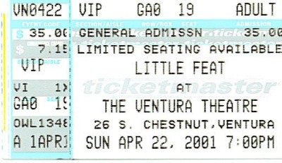 | Date: 04/22/2001 (April 22, 2001) | Location: Ventura Theatre - Ventura,CA |