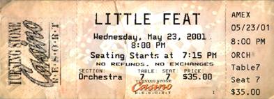 | Setlist: Set 1: Down On The Farm, Honest Man, Rag Mama Rag, Bed Of Roses, Mercenary Territory, Marginal Creatures, On Your Way Down > Jam > Day Or Night, Dixie Chicken > Tennessee Jed > Dixie Chicken Encore: Willin' (no Bogart), Let It Roll | |