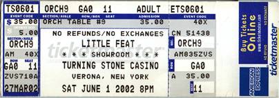 | Date: 06/01/2002 (June 1, 2002) | Location: Turning Stone Casino - Verona,NY |