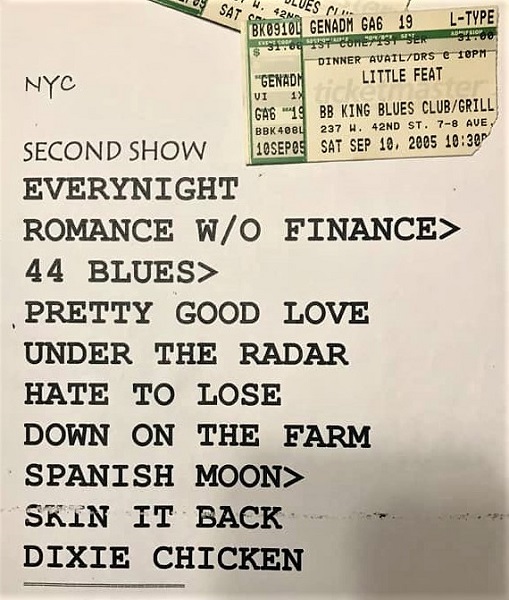 | Date: 09/10/2005 (September 10, 2005) | Location: B.B. King’s Blues Club - NYC,NY |