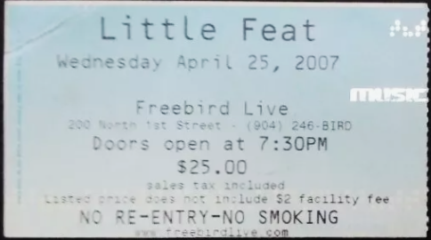 | Setlist: Marginal Creatures, Rock And Roll Doctor, All That You Dream, Spanish Moon, Cold Cold Cold > Down The Road, Mercenary Territory, Fat Man In The Bathtub > Get Up Stand Up > Night People > Fat Man In The Bathtub, Willin > Don't Bogart That Joint > This Land Is Your Land, Willin' , Gold Tooth Woman > Cajun Girl, Dixie Chicken > Bass Solo > Key Solo > Dixie Chicken Encore: Oh Atlanta | |