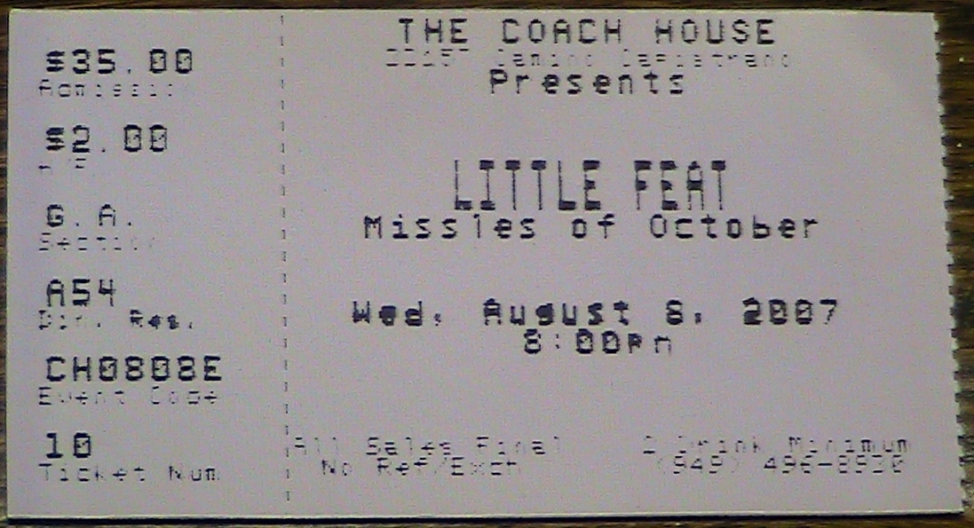 | Date: 08/08/2007 (August 8, 2007) | Location: Coach House - San Juan Capistrano,CA |