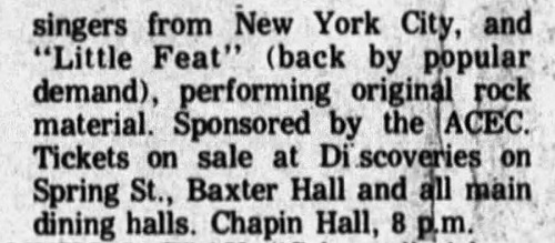 | Date: 03/01/1970 (March 1, 1970) | Location: Williams College - Chapin Hall - Williamstown,MA |