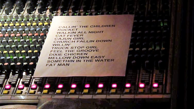 | Setlist: Calling The Children Home, Rocket In My Pocket, Walkin' All Night, Cat Fever, Cajun Girl, A Church Falling Down, Willin' > Don't Bogart That Joint > Willin', Under The Radar, Feel The Groove, Dixie Chicken > key jam > Dixie Chicken, Something In The Water, Fat Man In The Bathtub > Abba Zaba > Fat Man In The Bathtub, E: Let It Roll | |