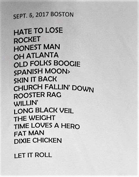 | Setlist: Hate To Lose Your Lovin`, Rocket In My Pocket, Honest Man, Oh Atlanta, Old Folks Boogie, Spanish Moon - Skin It Back, A Church Falling Down, Rooster Rag, Willin`, Long Black Veil - The Weight, Time Loves A Hero, Fat Man In The Bathtub, Dixie Chicken, E: Let It Roll | |