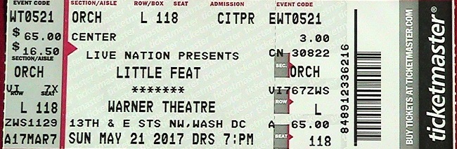 | Date: 05/21/2017 (May 21, 2017) | Location: Warner Theatre - Washington,DC |