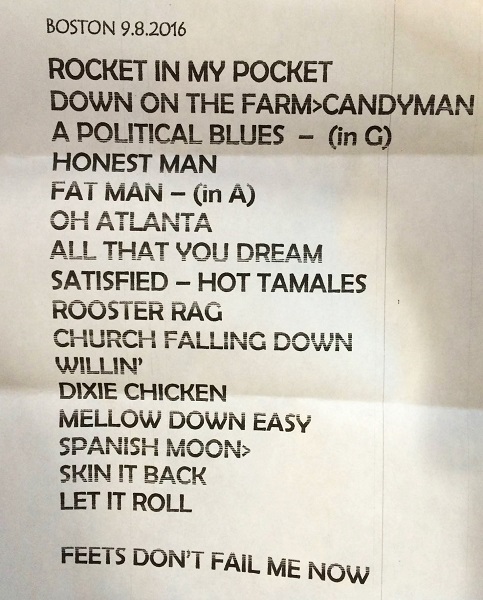 | Setlist: Rocket in My Pocket, Down on the Farm > Candy Man, A Apolitical Blues, Honest Man, Fat Man in the Bathtub, Oh Atlanta, All That You Dream, Can`t Be Satisfied > Hot Tamales, Rooster Rag, Church Falling Down, Willin`, Dixie Chicken, Mellow Down Easy, Spanish Moon > Skin It Back, Let It Roll, E: Feats Don`t Fail Me Now | |
