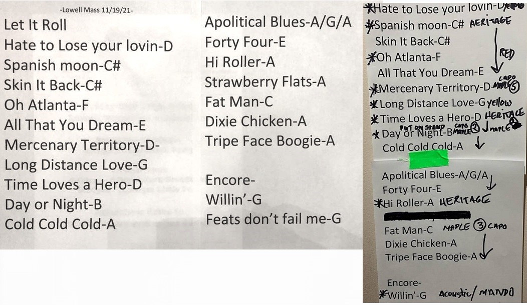 | Setlist: Let It Roll, Hate To Lose Your Lovin`, Spanish Moon > Skin It Back, Oh Atlanta, All That You Dream, Mercenary Territory, Long Distance Love, Time Loves A Hero, Day Or Night, Cold Cold Cold, A Apolitical Blues > Long Distance Call > A Apolitical Blues, Fourty Four Blues, High Roller, Fat Man In The Bathtub, Dixie Chicken > Tripe Face Boogie, E: Willin` *(with Jack Broadbent), Feats Don`t Fail Me Now | |