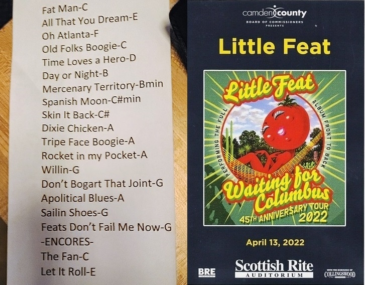 | Setlist: Fat Man In The Bathtub, All That You Dream, Oh Atlanta, Old Folks Boogie, Time Loves A Hero > Day Or Night, Mercenary Territory, Spanish Moon, Dixie Chicken > Tripe Face Boogie, Rocket In My Pocket, Willin` > Don`t Bogart That Joint, A Apolitical Blues, Sailin` Shoes, Feats Don`t Fail Me Now, E: The Fan, Let It Roll | |