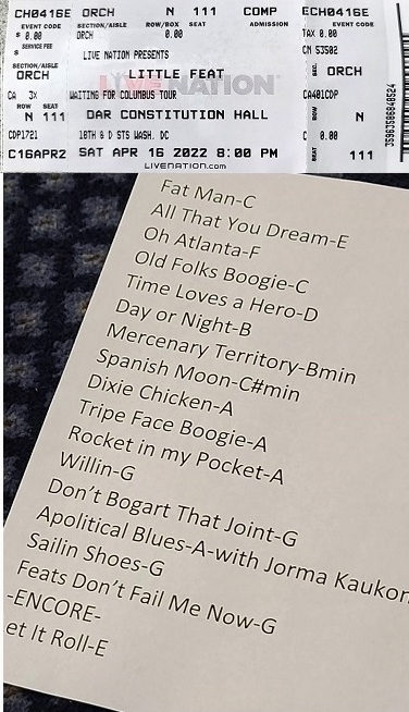 | Setlist: Fat Man In The Bathtub, All That You Dream, Oh Atlanta, Old Folks Boogie, Time Loves A Hero > Day Or Night, Mercenary Territory, Spanish Moon, Dixie Chicken > Tripe Face Boogie, Rocket In My Pocket, Willin` > Don`t Bogart That Joint, A Apolitical Blues*, Sailin` Shoes, Feats Don`t Fail Me Now, E: Let It Roll | |