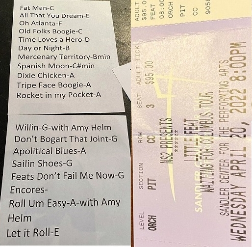 | Setlist: Fat Man In The Bathtub, All That You Dream, Oh Atlanta, Old Folks Boogie, Time Loves A Hero > Day Or Night, Mercenary Territory, Spanish Moon, Dixie Chicken > Tripe Face Boogie, Rocket In My Pocket, Willin`# > Don`t Bogart That Joint, A Apolitical Blues, Sailin` Shoes, Feats Don`t Fail Me Now, E: Roll Um Easy#, Let It Roll | |