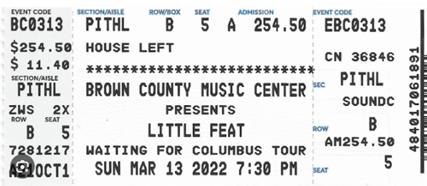 | Date: 03/13/2022 (March 13, 2022) | Location: Brown County Music Center - Nashville,IN |