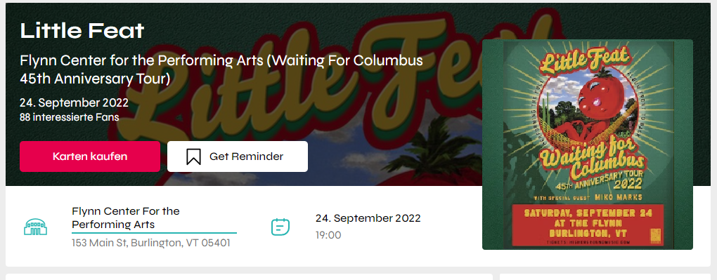 | Date: 09/24/2022 (September 24, 2022) | Location: Flynn Center for the Performing Arts - Burlington,VT |
