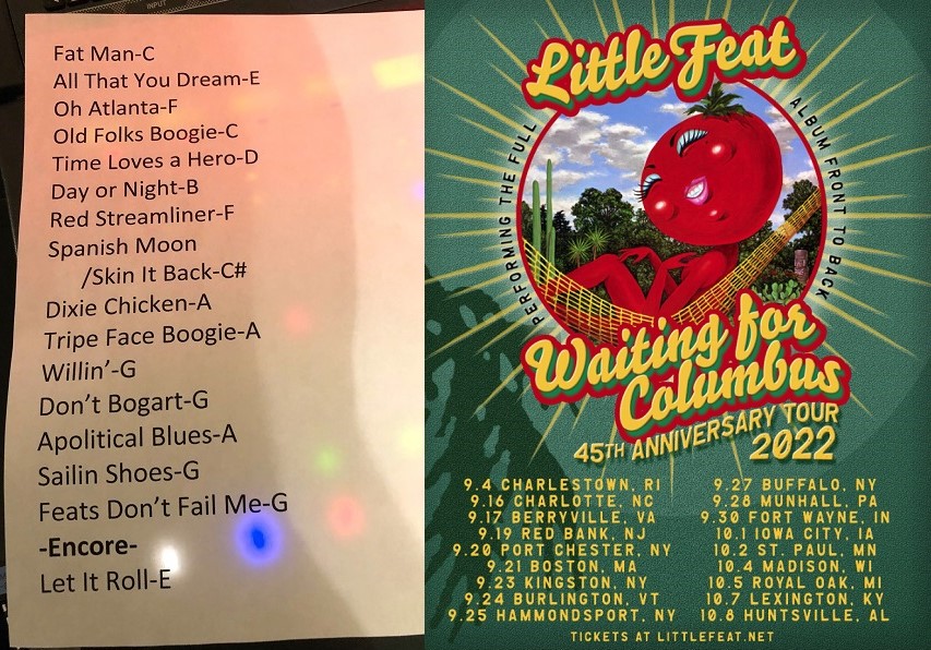 | Setlist: Fat Man In The Bathtub, All That You Dream, Oh Atlanta, Old Folks Boogie, Time Loves A Hero > Day Or Night, Red Streamliner, Spanish Moon > Skin It Back, Dixie Chicken > Tripe Face Boogie, Rocket In My Pocket, Willin`> Don`t Bogart That Joint, A Apolitical Blues, Sailin` Shoes, Feats Don`t Fail Me Now, E: Let It Roll | |