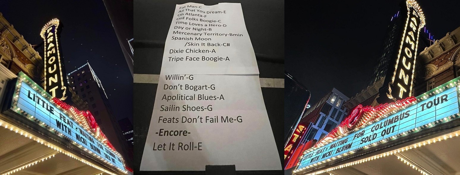 | Setlist: Fat Man In The Bathtub, All That You Dream, Oh Atlanta, Old Folks Boogie, Time Loves A Hero > Day Or Night, Spanish Moon > Skin It Back, Dixie Chicken > Tripe Face Boogie, Rocket In My Pocket, Willin`> Don`t Bogart That Joint, A Apolitical Blues, Sailin` Shoes, Feats Don`t Fail Me Now, E: Let It Roll | |