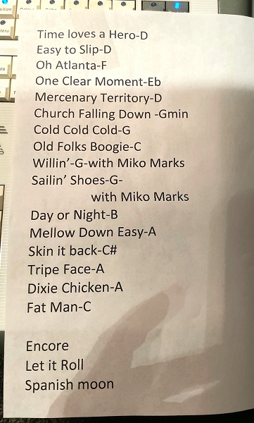 | Setlist: Time Loves A Hero, Easy To Slip, Oh Atlanta, One Clear Moment, Mercenary Territory, Church Falling, Down, Cold Cold Cold, Old Folks Boogie, Sailin Shoes*, Willin*, Day Or Night, Mellow Down Easy, Skin It Back > Tripe Face Boogie, Dixie Chicken, Fat Man In The Bathtub, E: Spanish Moon | |