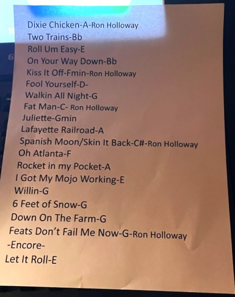 | Setlist: Dixie Chicken, Two Trains, Roll Um Easy, On Your Way Down, Kiss It Off, Fool Yourself, Walkin` All Night, Juliette, Fat Man In The Bathtub, Lafayette Railroad, Spanish Moon > Skin It Back, Oh Atlanta, Rocket In My Pocket, I Got My Mojo Working, Willin`, Six Feet Of Snow, Down On The Farm, Feats Don`t Fail Me Now, E: Let It Roll | |