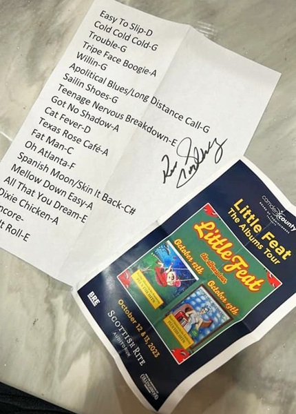 | Setlist: Easy To Slip, Cold Cold Cold, Trouble, Tripe Face Boogie, Willin`, Apolitical Blues > Long Distance Call, Sailin` Shoes, Teenage Nervous Breakdown, Got No Shadow, Cat Fever, Texas Rose Cafe, Fat Man In The Bathtub, Oh Atlanta, Spanish Moon > Skin It Back, Mellow Down Easy, All That You Dream*, Dixie Chicken, E: Let It Roll | |