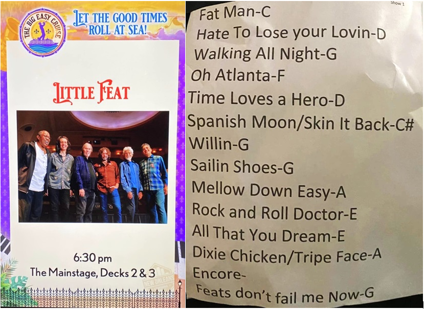 | Setlist: Fat Man In The Bathtub, Hate To Lose Your Lovin`, Walking All Night, Oh Atlanta, Time Loves A Hero, Spanish Moon > Skin It Back, Willin`, Sailin Shoes, Mellow Down Easy, Rock And Roll Doctor, All That You Dream, Dixie Chicken | |