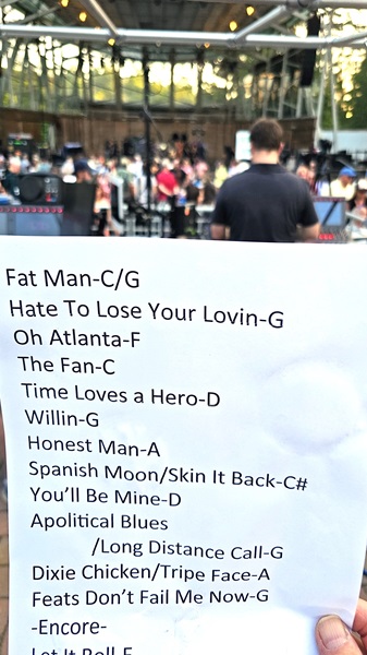 | Setlist: Fat Man In The Bathtub, Hate To Lose Your Loving, Oh Atlanta, The Fan, Time Loves A Hero, Willin, Honest Man, Spanish Moon > Skin It Back, You`ll Be Mine, A Apolitical Blues > Long Distand Call, Dixie Chicken > Tripe Face Boogie, Feats Don`t Fail Me Now, E: Let It Roll, E2:: Old Folks Boogie | |