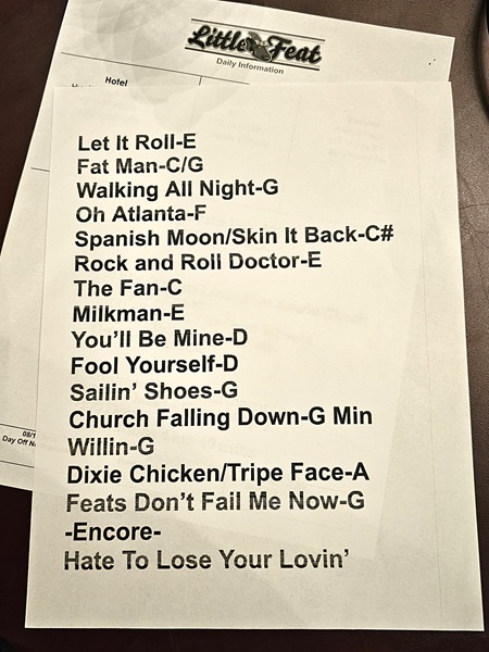 | Setlist: Let It Roll, Fat Man in the Bathtub, Walking All Night, Oh Atlanta, Spanish Moon > Skin It Back, Rock And Roll Doctor, The Fan, Milkman, You`ll Be Mine,Fool Yourself, Sailin Shoes, Church Falling Down, Willin`, Dixie Chicken > Tripe Face Boogie, Feats Don`t Fail Me Now, E: Hate to Lose Your Lovin` | |