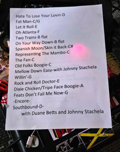 | Setlist: Hate To Lose Your Lovin`, Fat Man In The Bathtub, Let It Roll, Oh Atlanta, Two Trains, On Your Way Down, Spanish Moon > Skin it Back, Representing The Mambo, The Fan, Old Folks Boogie, Mellow Down Easy*, Willin`, Rock and Roll Doctor, Dixie Chicken > Tripe Face Boogie, Feats Don`t Fail Me Now, E: Southbound# | |