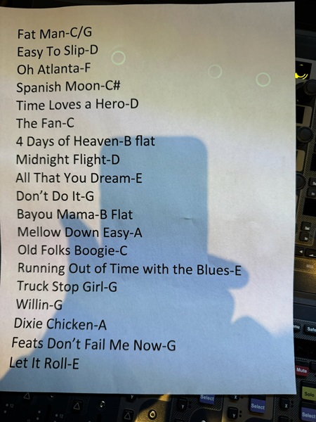 | Setlist: Fat Man, Easy To Slip, Oh Atlanta, Spanish Moon, Time Loves a Hero, The Fan, 4 Days of Heaven, Midnight Flight, All That You Dream, Don`t Do It, Bayou Mama, Mellow Down Easy, Old Folks Boogie, Running Out of Time with the Blues, Truck Stop Girl, Willin, Dixie Chicken, Feats Don`t Fail Me Now, E:Let It Roll | |