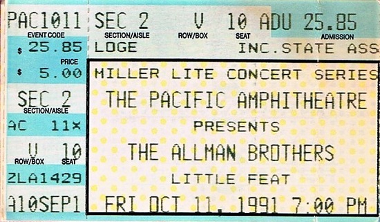 | Date: 10/11/1991 (October 11, 1991) | Location: Pacific Amphitheatre - Costa Mesa,CA |