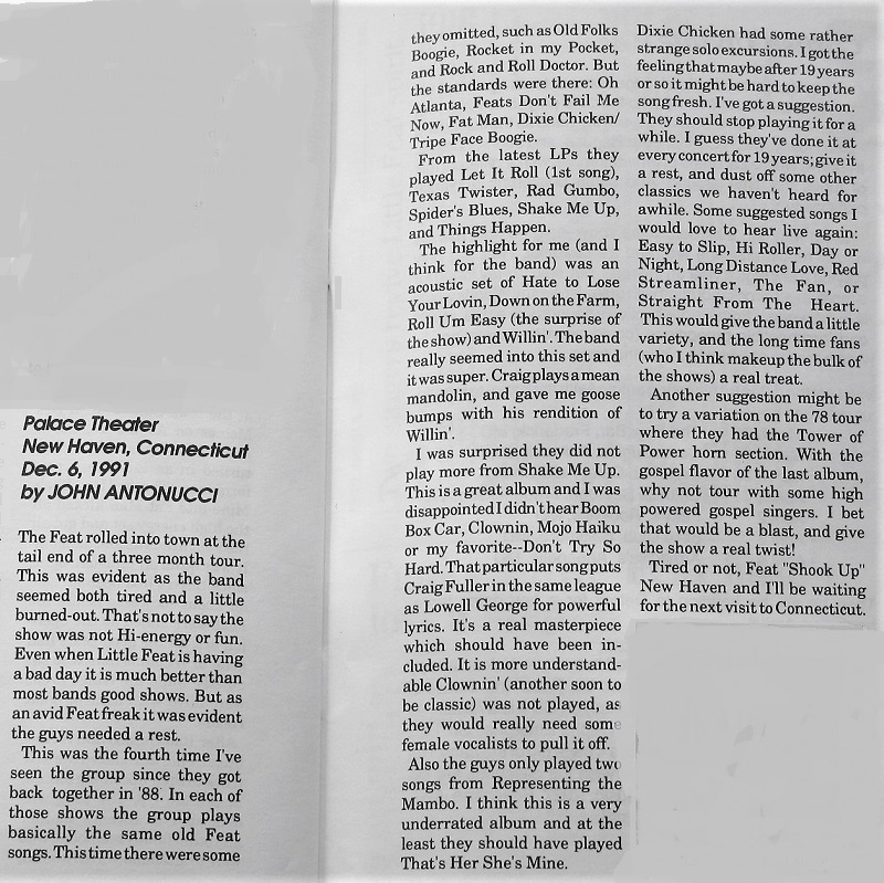 | Date: 12/06/1991 (December 6, 1991) | Location: Palace Theatre - New Haven,CT |