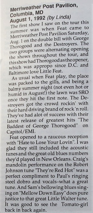 | Date: 08/01/1992 (August 1, 1992) | Location: Merriweather Post Pavilion - Columbia,MD |