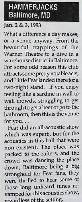 | Date: 01/02/1993 (January 2, 1993) | Location: Hammerjacks - Baltimore,MD |