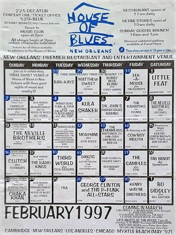 | Date: 02/01/1997 (February 1, 1997) | Location: House Of Blues - New Orleans,LA |